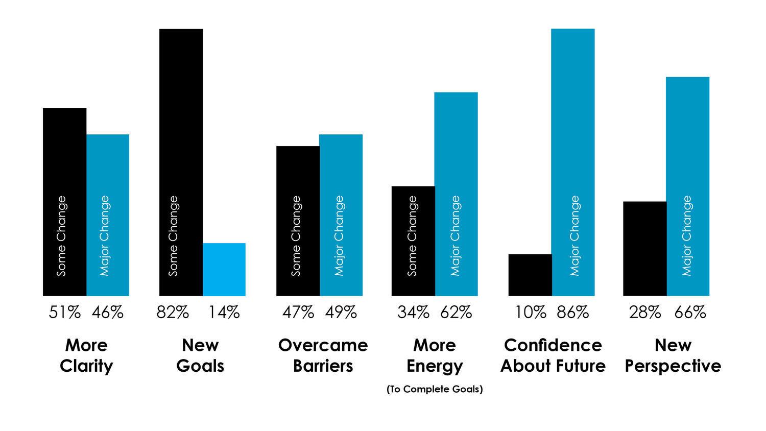 Numbers are important. We survey participants to ensure that they get results. Participants gain more clarity about their future, discover new goals, and have more energy and confidence to achieve their goals. The Mind Lab gets results!